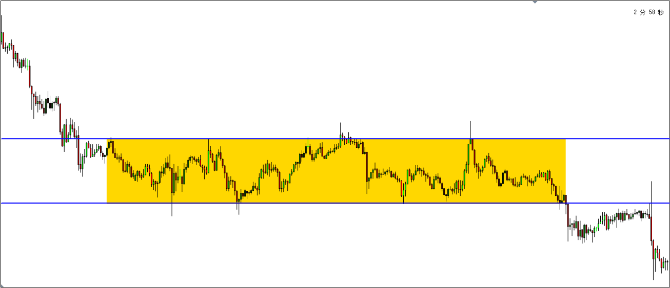 サポートラインとレジスタンスラインといった水平線に挟まれたレンジ