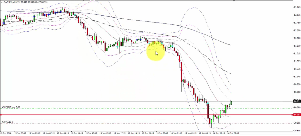 日足レベルの強いサポートと、意識されやすい節目のダブルゼロライン(80.000)が重なるポイントであったことから、一旦反発するだろうという予測のもと短期足でロングのタイミングを探したいという状況です。