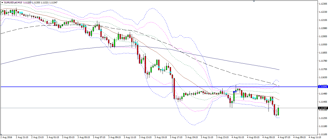 この1時間足では、4時間足のサポート(高値をつけた押し目)を割って調整で横に流れて(レンジになって)安値を更新してきている状況です。すぐ上には4時間足のラインでレジスタンスになっており、安値も更新してきていることから目線は下で考えます。