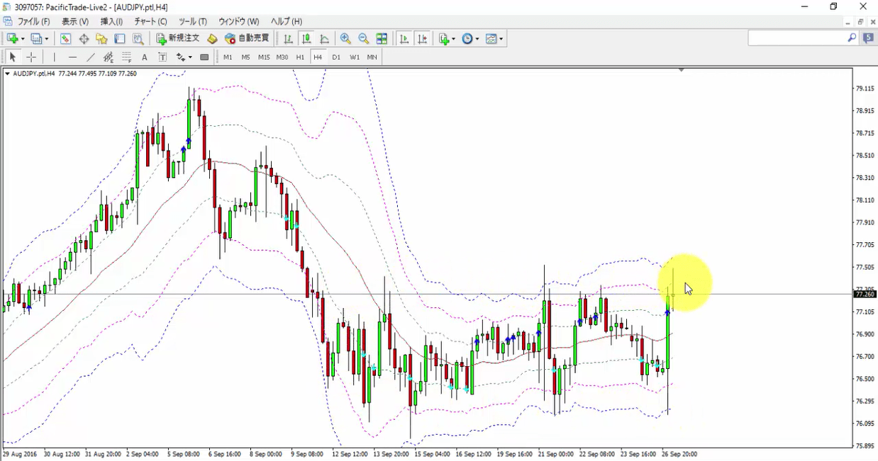 レートが±2σ間を上下に行ったり来たりしているのを確認できると思います。