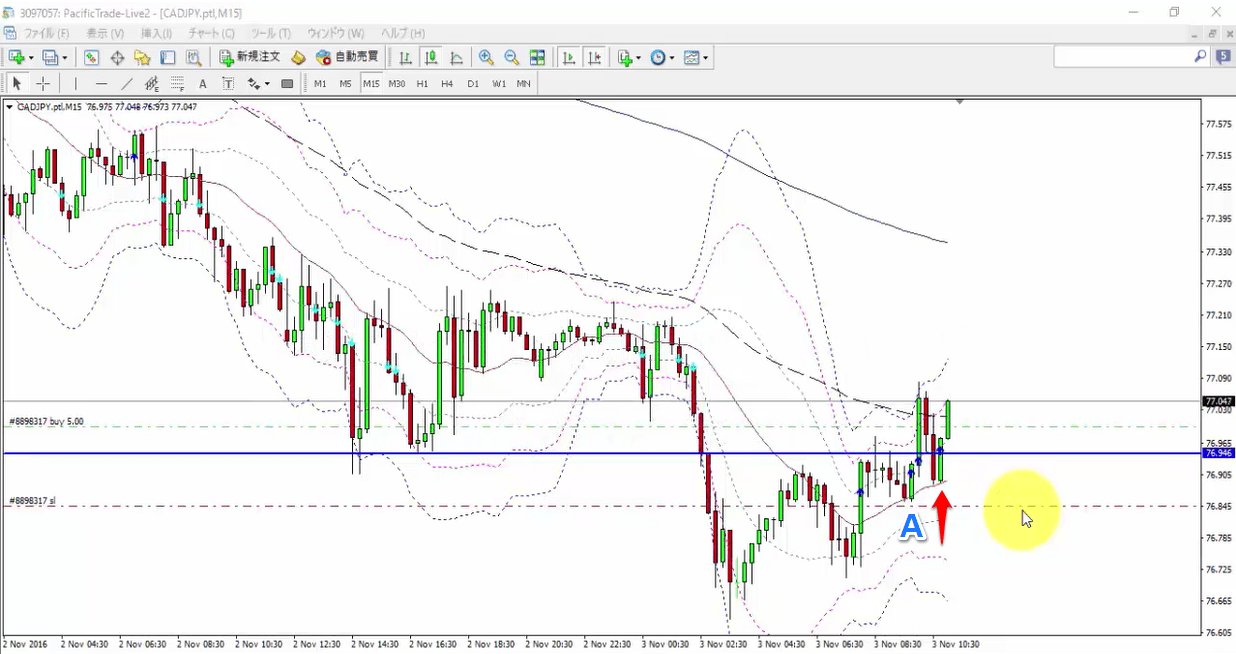 今回のトレード事例は2016.11.3のCADJPYになります。